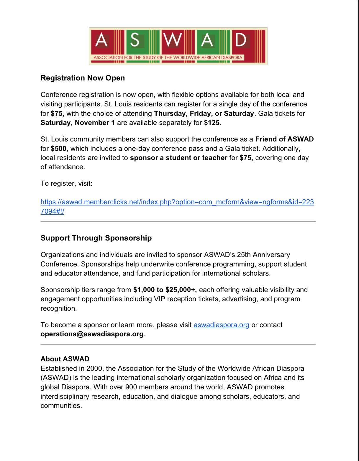 Press Release: ASWAD Celebrates 25th Anniversary with Landmark 2025 Conference in St. Louis